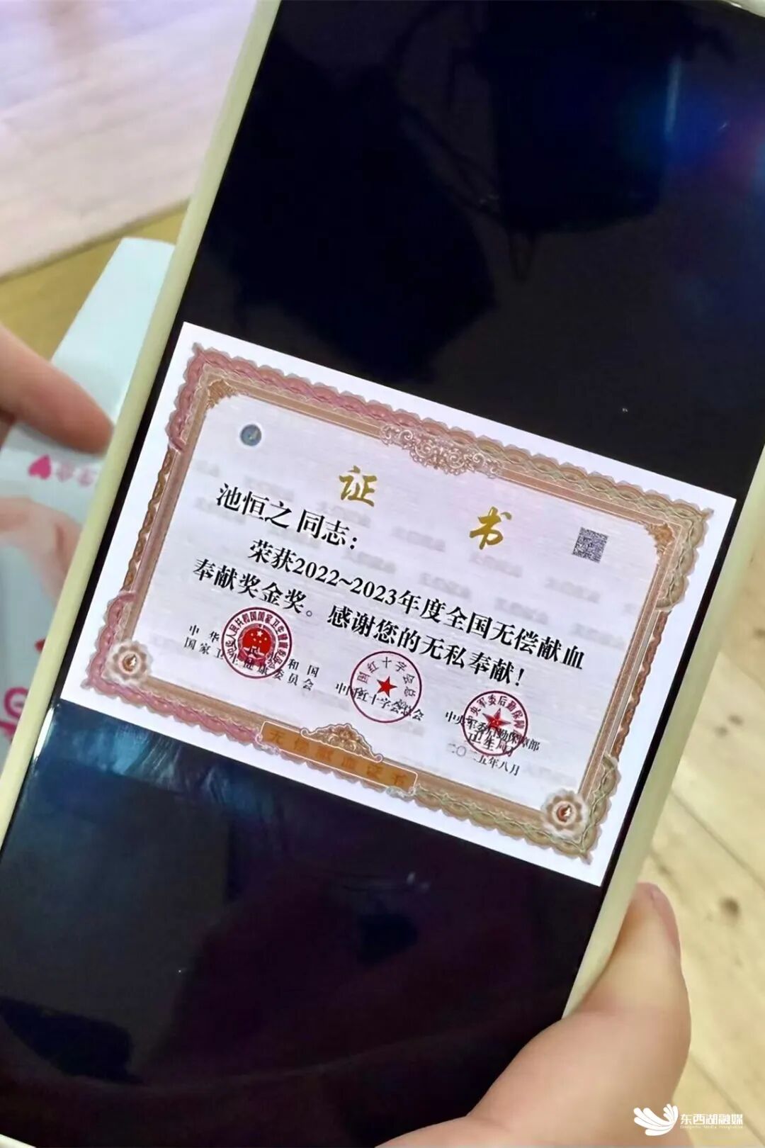在协和东西湖医院无偿献血活动现场,记者见到来自金银湖街卫生院公共卫生科,被誉为“献血模范”的池恒之。多年来,他累计献血51次,其中47次为成分血捐献,曾荣获全国无偿献血奉献奖金奖。