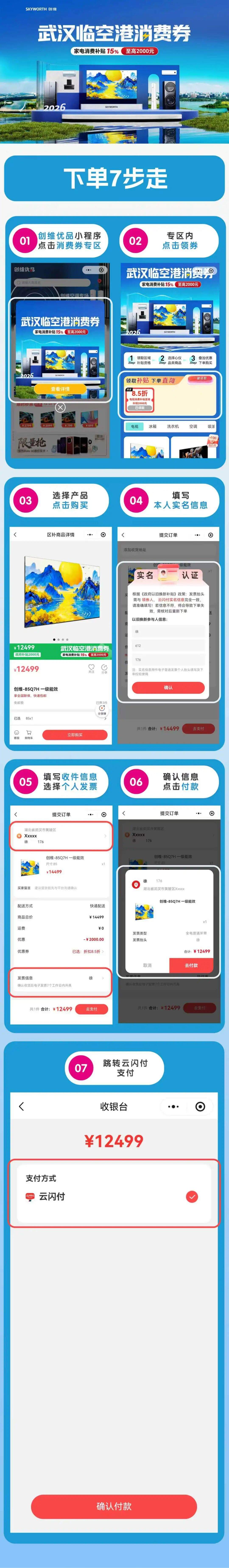 领券指南:微信搜索“创维优品”小程序,进入商城,解锁“临空港消费专区”,彩电专属85折即刻享用,最高补贴2000元。叠加创维品质保障,花少钱也能拿下高品质家电。