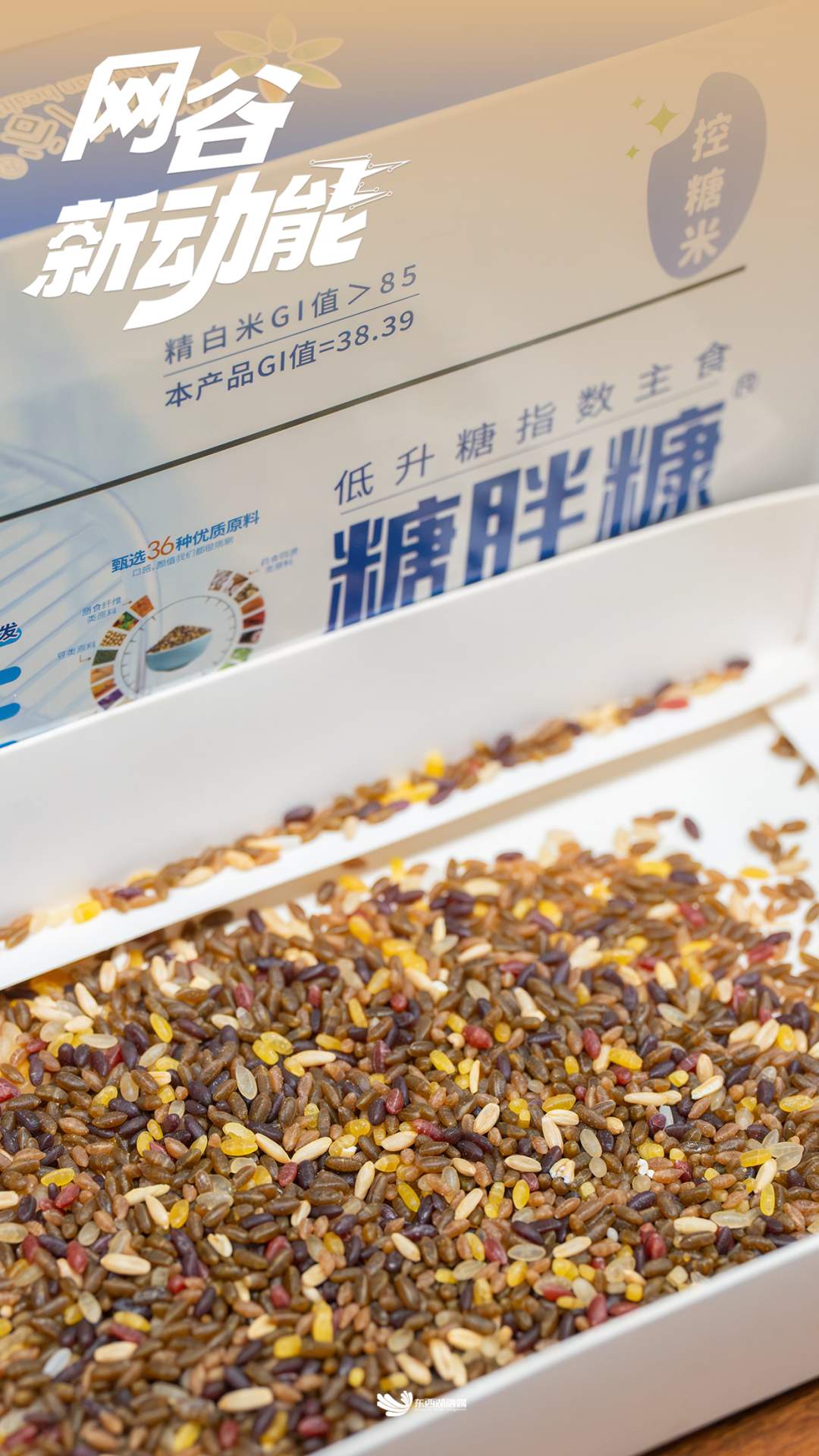 公司拳头产品“糖胖糠”低GI复合营养米。