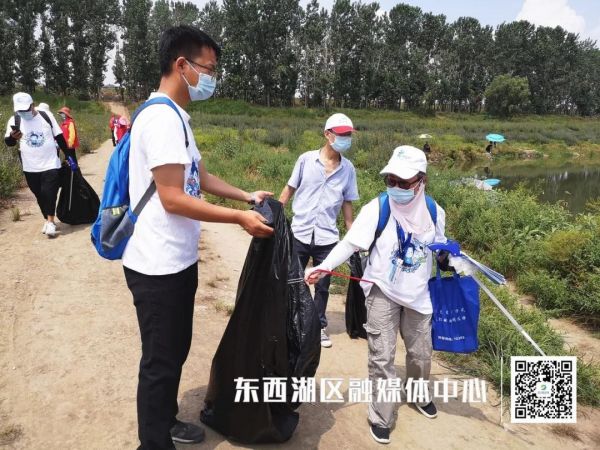 她背着河湖长的工具包,包里装有垃圾钳、手机,随时拍照,将现场情况报告给街道管控单位的官方河湖长,同时也报告给爱湖志愿者协会。