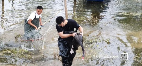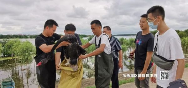 7月15日15时,区国土资源和规划局、区园林局、走马岭街青锋大队三个部门联合出动十余人,经过一个小时的救援,最终将“落单”黑天鹅救起,送往武汉市动物园。