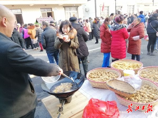 长江日报—长江网1月12日讯 炸丸子、打糍粑、摊豆丝、写春联、猜灯谜、看表演……1月12日上午,2020年乡村过大年暨幸福东西湖迎春赶集会系列活动在该区东山街群力大队启动,成百上千的市民从四面八方涌向村内,现场喜庆热闹。