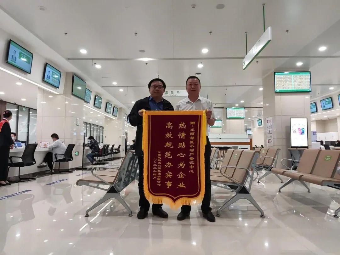 中国铁路武汉局集团负责人向东西湖区不动产登记处赠送锦旗(图源:长江日报)