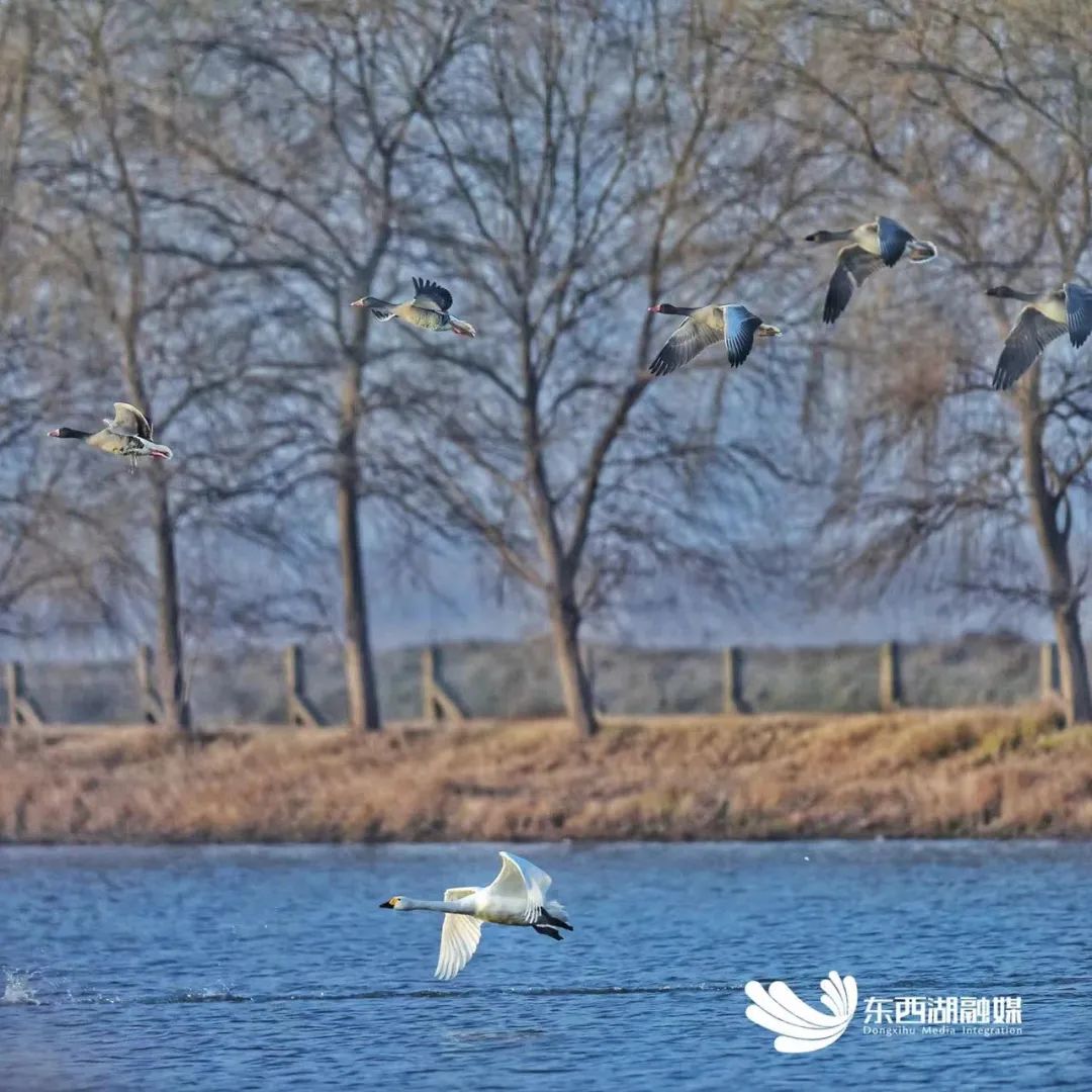 水、草、滩、鱼、虾、螺……对各种水鸟来说,堪比栖居天堂。雁、鸭、琵鹭、鸥、鹬等水鸟,每年不远千里迁徙而来。