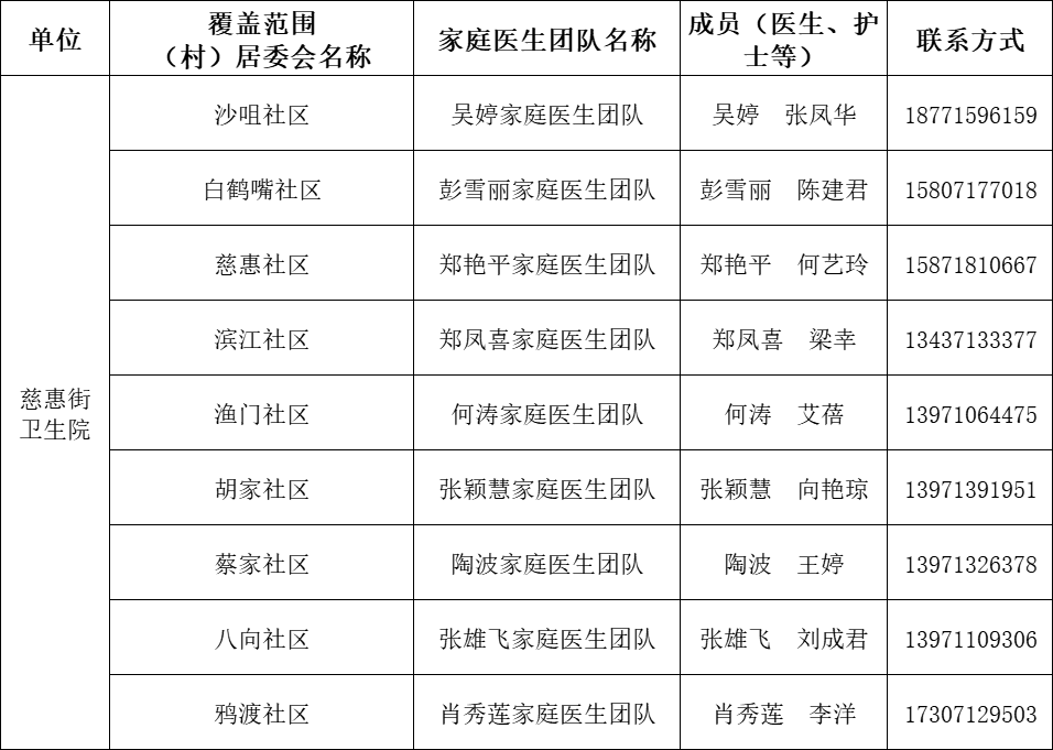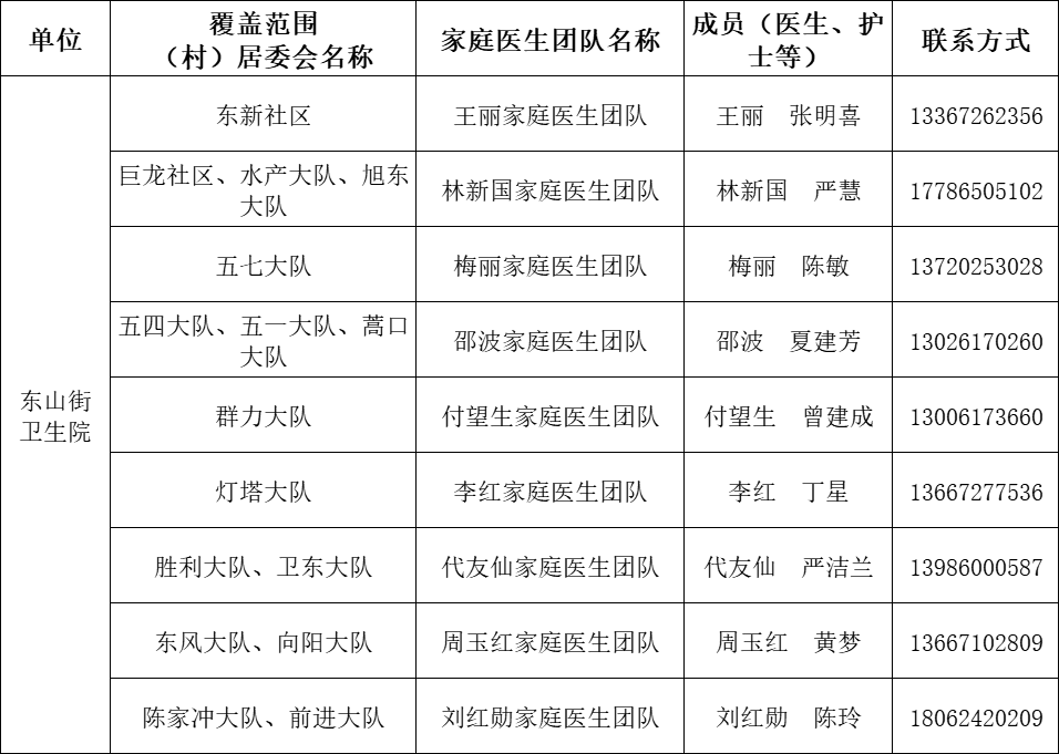 12月16日,东西湖区卫健局公布95支家庭医生签约服务团队的名单及联系方式。