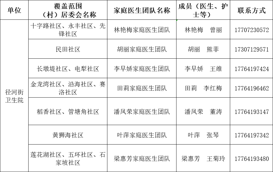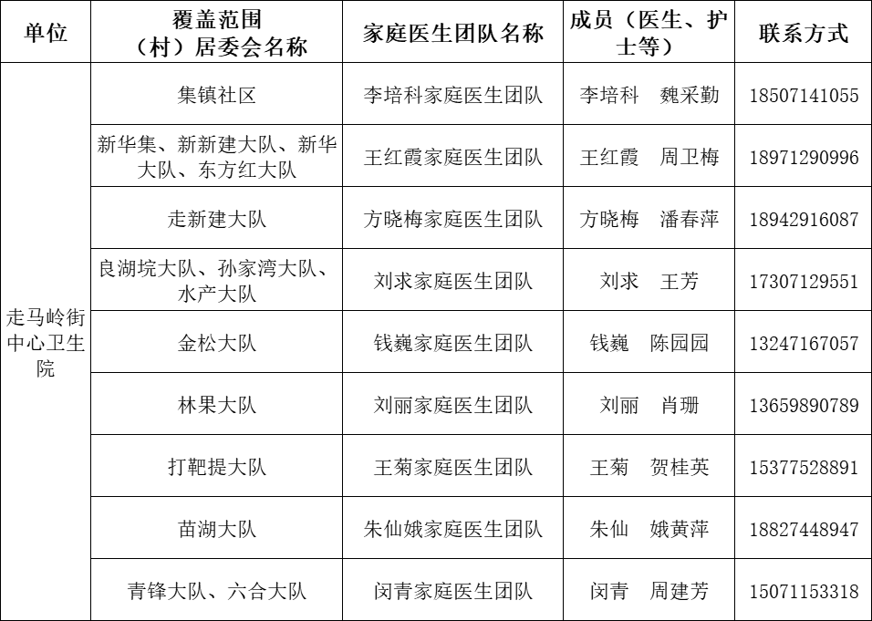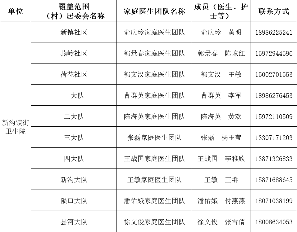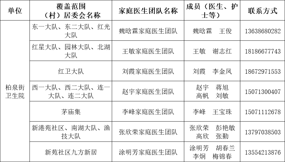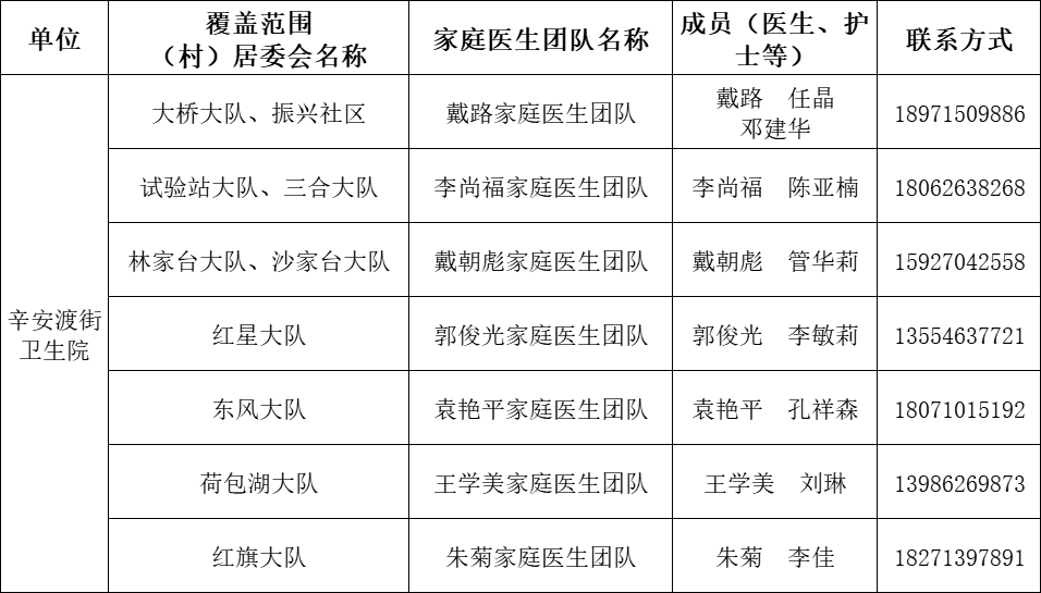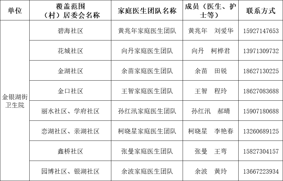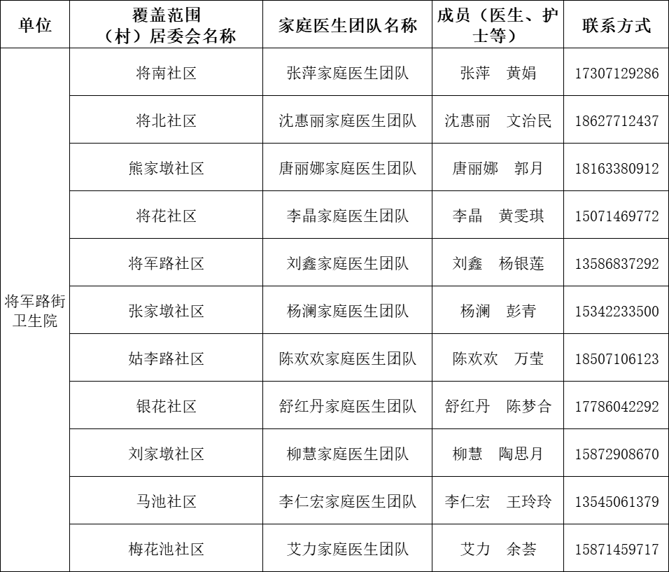 东西湖区家庭医生团队信息