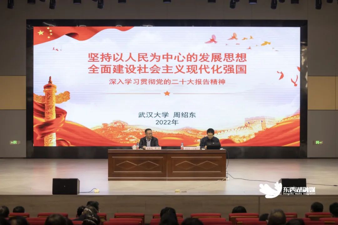 此次读书班采取专题辅导报告、个人自学和集中研讨相结合的方式进行。报告会上,市委宣讲团成员、武汉大学马克思主义学院教授周绍东以《坚持以人民为中心的发展思想 全面建设社会主义现代化强国》为题,围绕中国式现代化道路、全面建设社会主义现代化国家进程中的湖北和武汉等四个方面,对党的二十大精神进行了系统阐释。