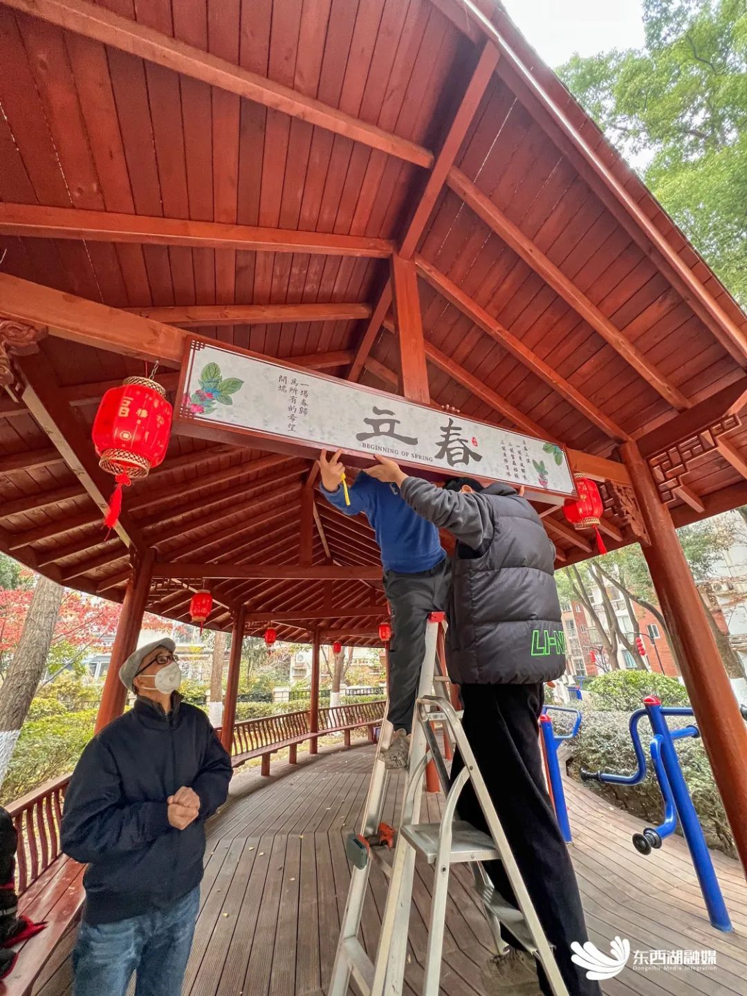 “我们今天要把二十四节气的牌子挂上去,长廊基本就完成了,居民休闲健身又有了新去处。”