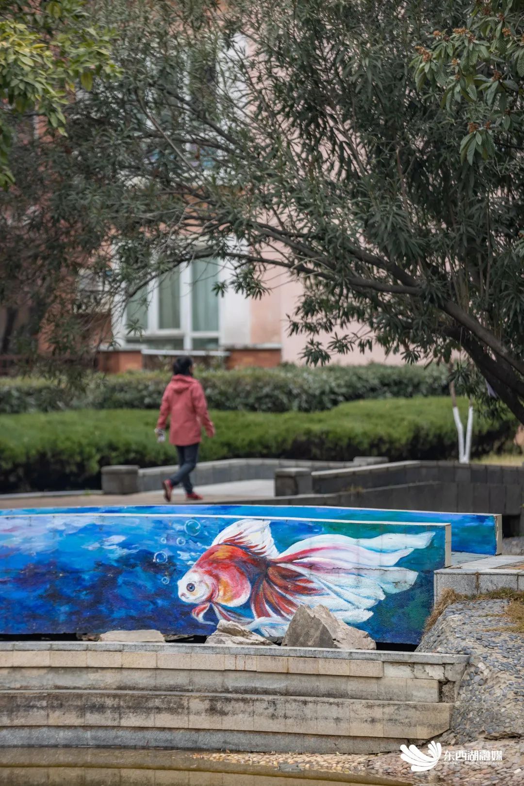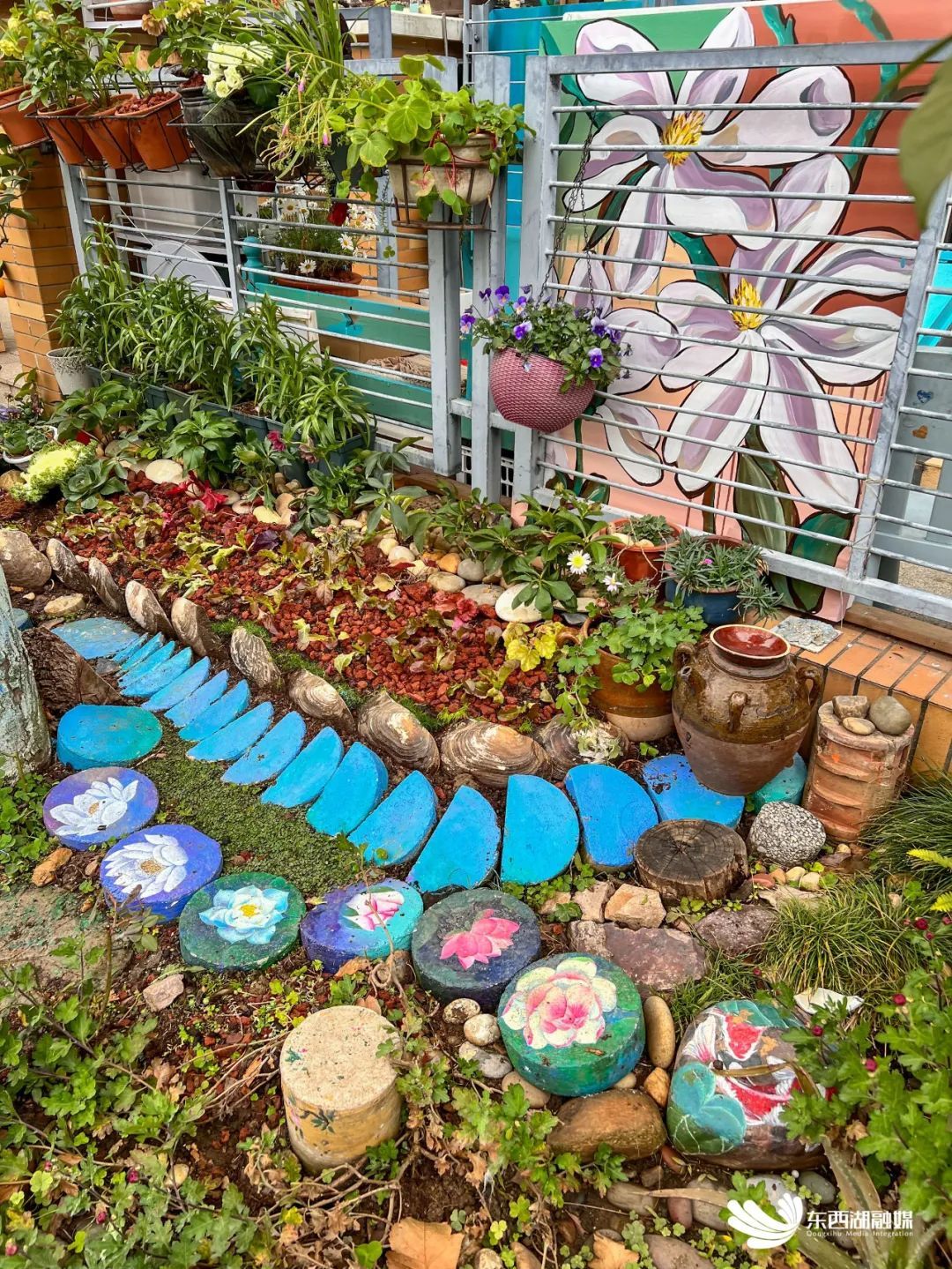 据介绍,这位居民叫做曾梦利,是一名80后宝妈,曾学过美术,平时就喜欢在石头、树干、墙壁上画画。社区关注到了曾梦利的艺术才情后,邀请她成为社区空间绘画师,助力社区的美化改造。