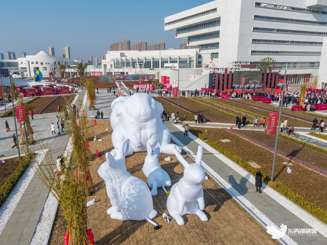 5米高的大型福兔以及错落分布在花园草坪的小兔子,诉说着新一年的福气满满,吸引着无数年轻人打卡拍照,“前兔似锦”“大展鸿兔”,留下对新年的期待。