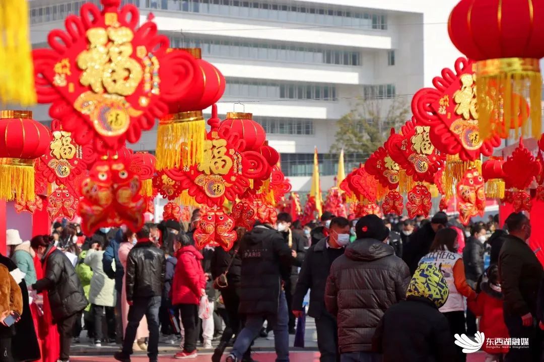 中国潮红与简约纯白的色彩相融,红红火火与清素淡雅的氛围交汇,年味满满、腔调十足的传统庙会与颜值担当、网红打卡的文化馆完美结合,这就是东西湖的人间烟火气。