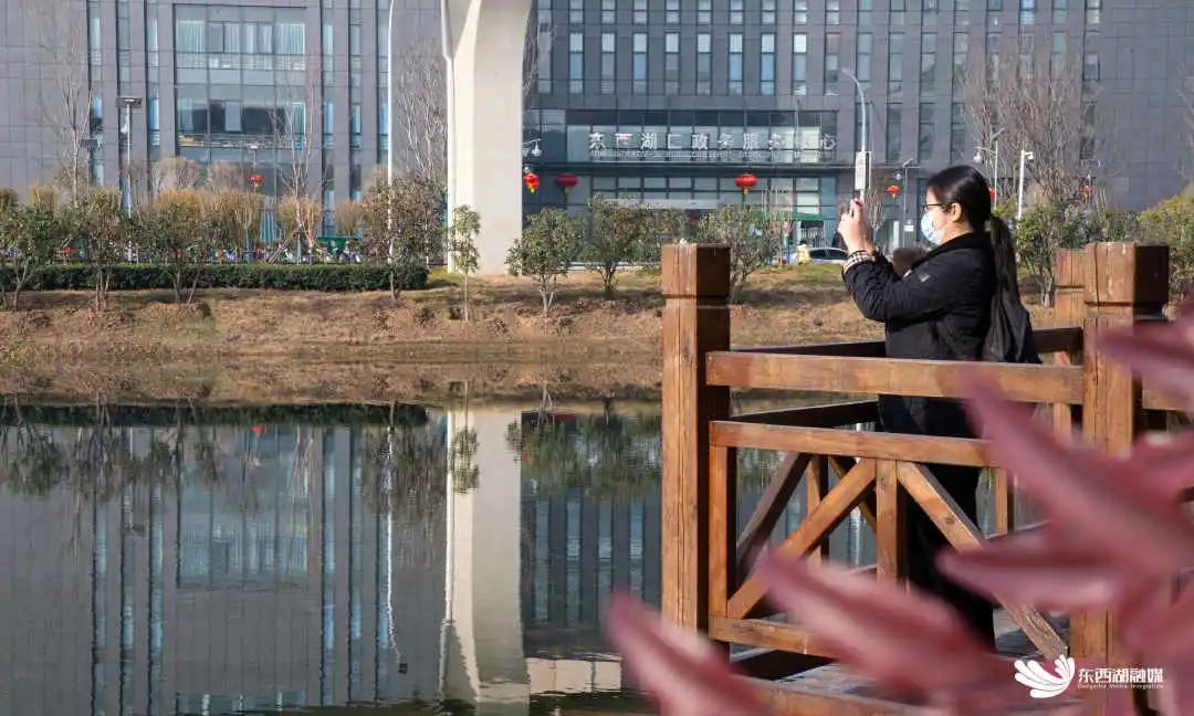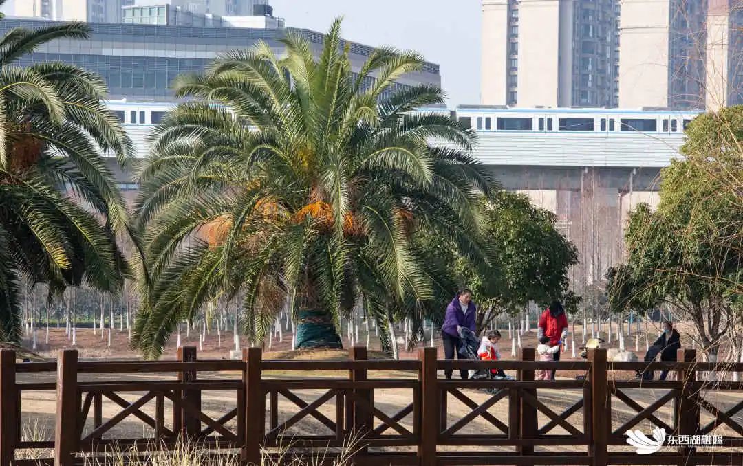 亲戚朋友三五人或是围坐在驿站里,或是走在樱花溪公园绿道上,尽览东西湖湿地花城新美景,享受惬意的美好时光。