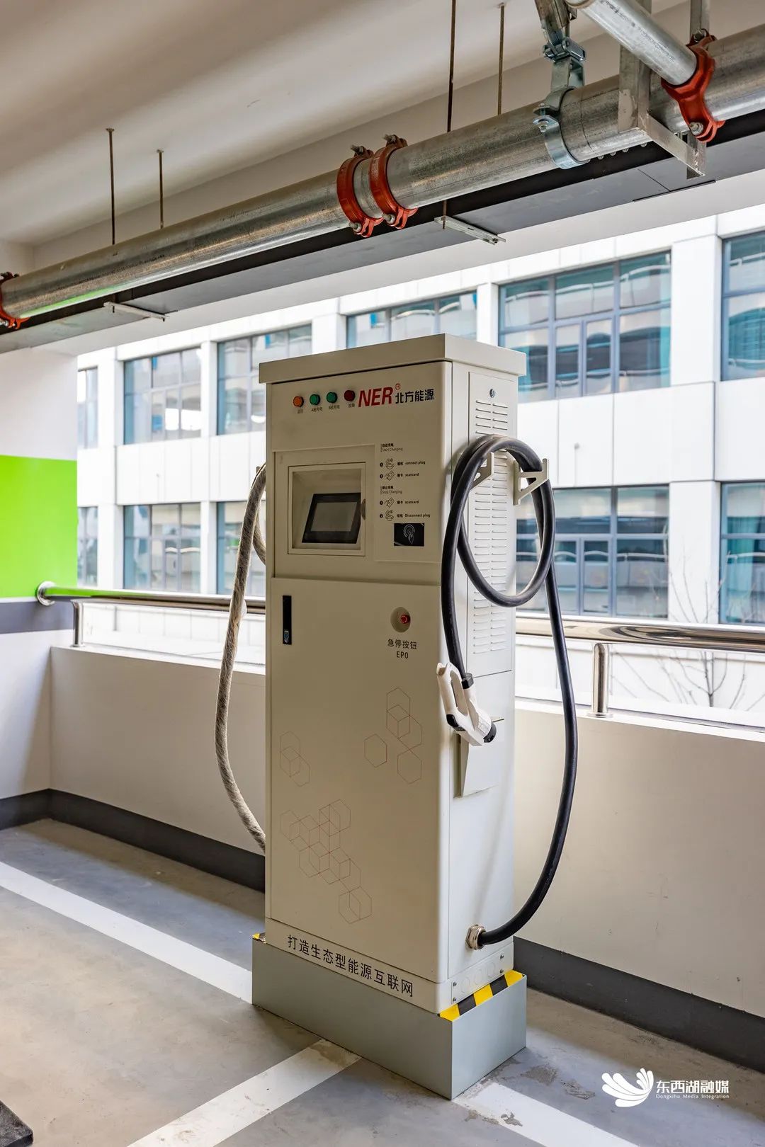 随着临空港新城多个住宅小区交付,居民公共服务需求日益增加。位于径西二路和智雅路交叉口的五环停车楼,地上共有8层,总建筑面积约2万平方米,停车泊位中包括136个充电桩车位,其中有28个快充电桩。