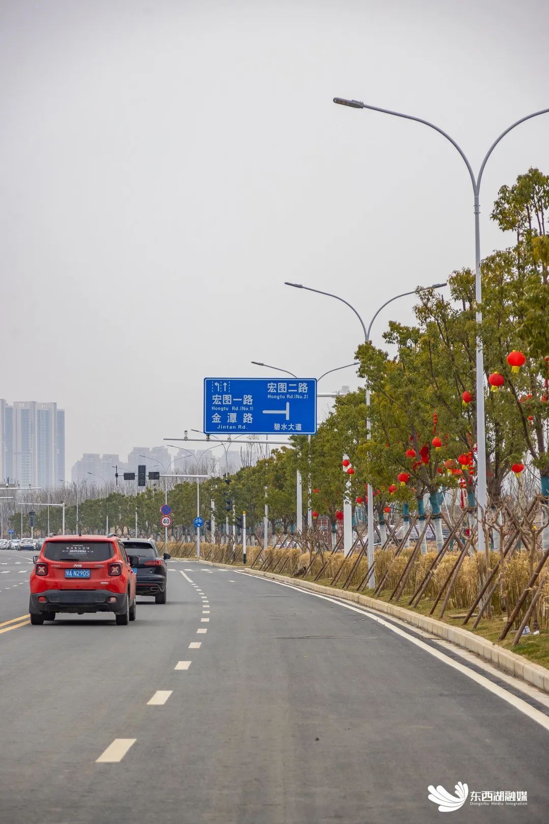 碧水大道宏图路至宏图二路段率先建成通车。
