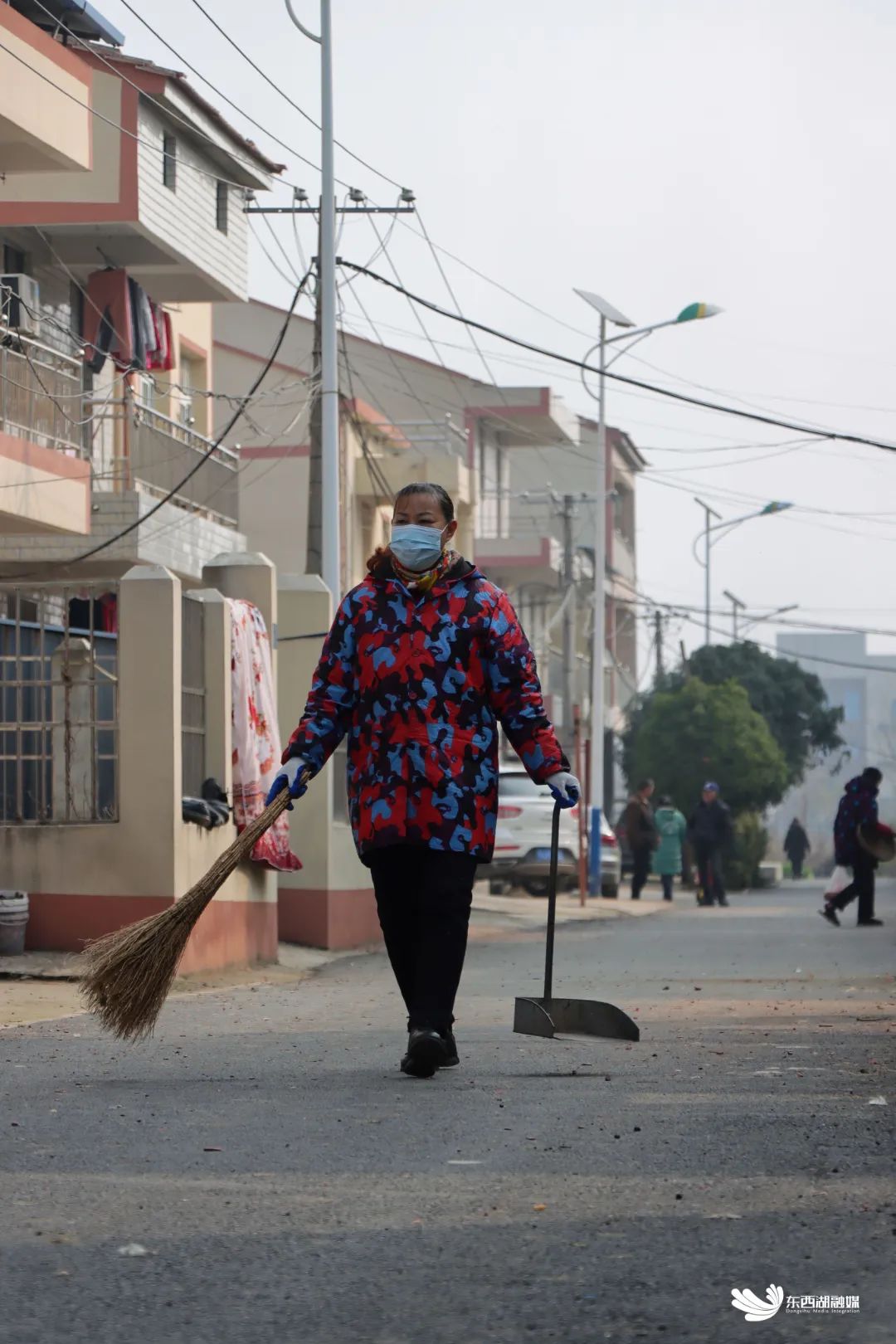 路打通了,也修好了,村民开始自发对路面进行洒水养护与清洁。现在,村湾里每家每户都习惯在自家门前挂上一把扫把,自己村的路,咱自己打扫。