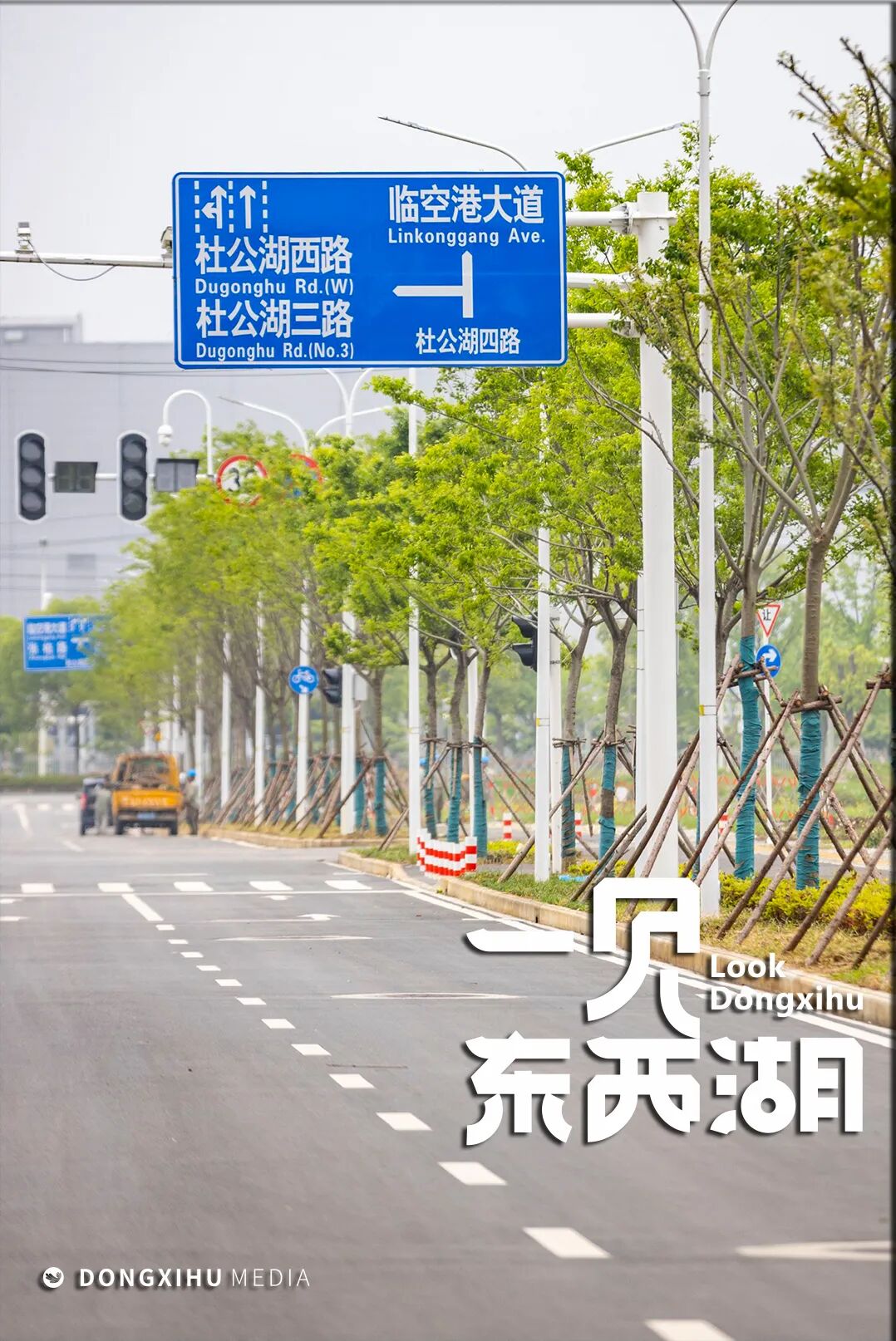 记者在现场看到,该路为弧形道路,中间段直接连通杜公湖国家湿地公园西入口,目前道路沥青路面、绿化、路灯、标识标牌已全部完工,为市民游客打造了一条新的亲水廊道。