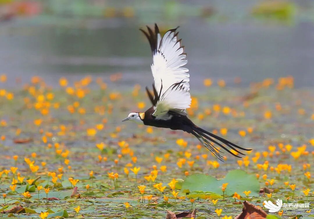 “第一次见到水凤凰群落,还是在5月初的府河北岸。”夏候鸟水雉是国家二级重点保护鸟类,原生在热带及亚热带开放性湿地中,夏季北上寻觅栖息地繁殖。在东西湖境内发现水雉群落,周东泉格外兴奋。