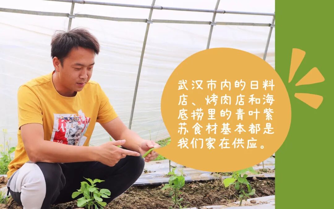 “这个品种叶大薄嫩,表面相对光滑且两面都是青色,带有清香,美观又美味。一公斤种子可以发上万株青叶紫苏苗,回去后我们就开始了试验种植。”春季播种,秋季收割,相似的季风气候使得青叶紫苏的试种非常顺利,余龙飞和周友梅逐渐扩大播种面积,承接湖北省内的需求市场。