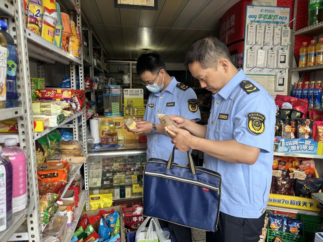执法人员在考点周边便利店开展现场检查。(通讯员供图)