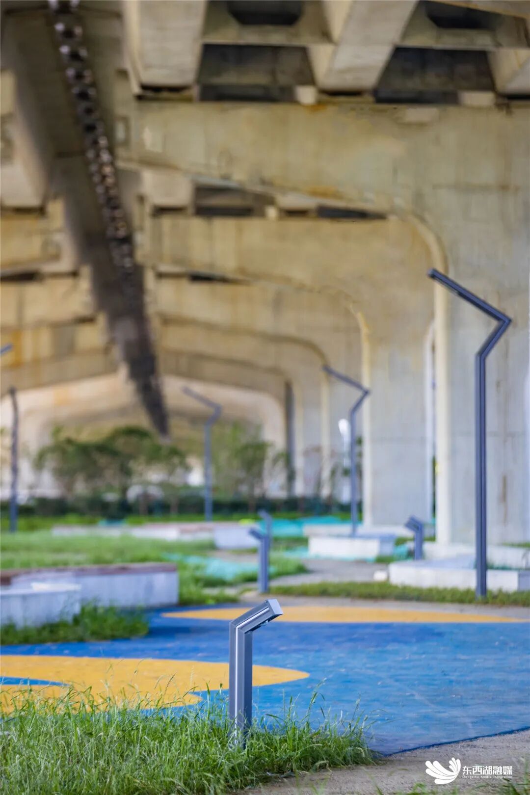 “通过桥下空间微更新,将沉闷的‘灰色地带’拓展成多彩的‘生活空间’,打造公共休闲空间,在喧嚣的四环线高架桥下打造具有意境的绿洲花园,使低能效的边角绿地蜕变为服务于周边居民的活力公园。”