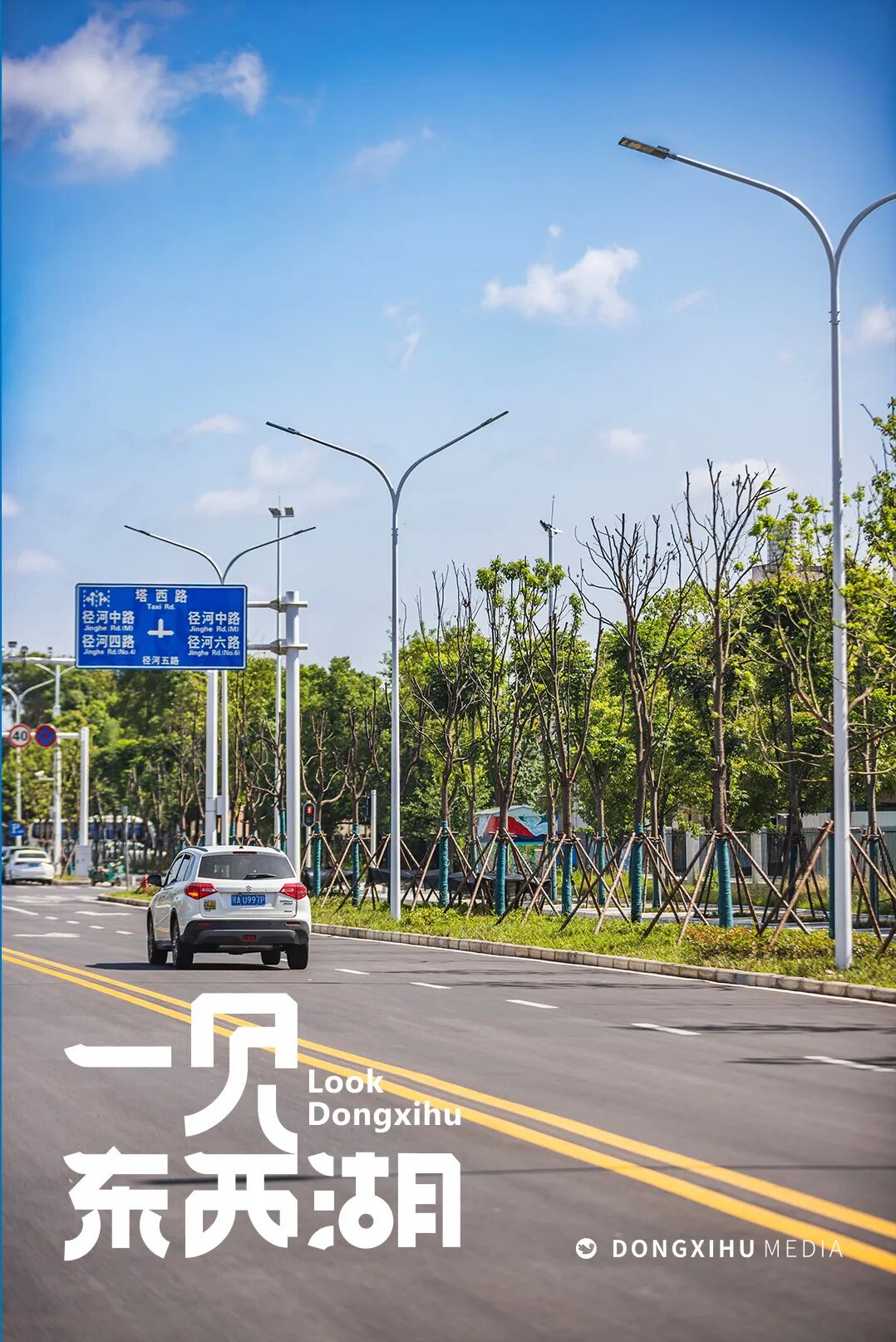径河中路西起径河一路,东至径河七路,双向两车道,全长约1800米。这条路新改建完工通车后,极大程度便利了沿线企业车辆通行,促进人员和物资的高效流动,提升了交通承载能力,改善了片区环境。