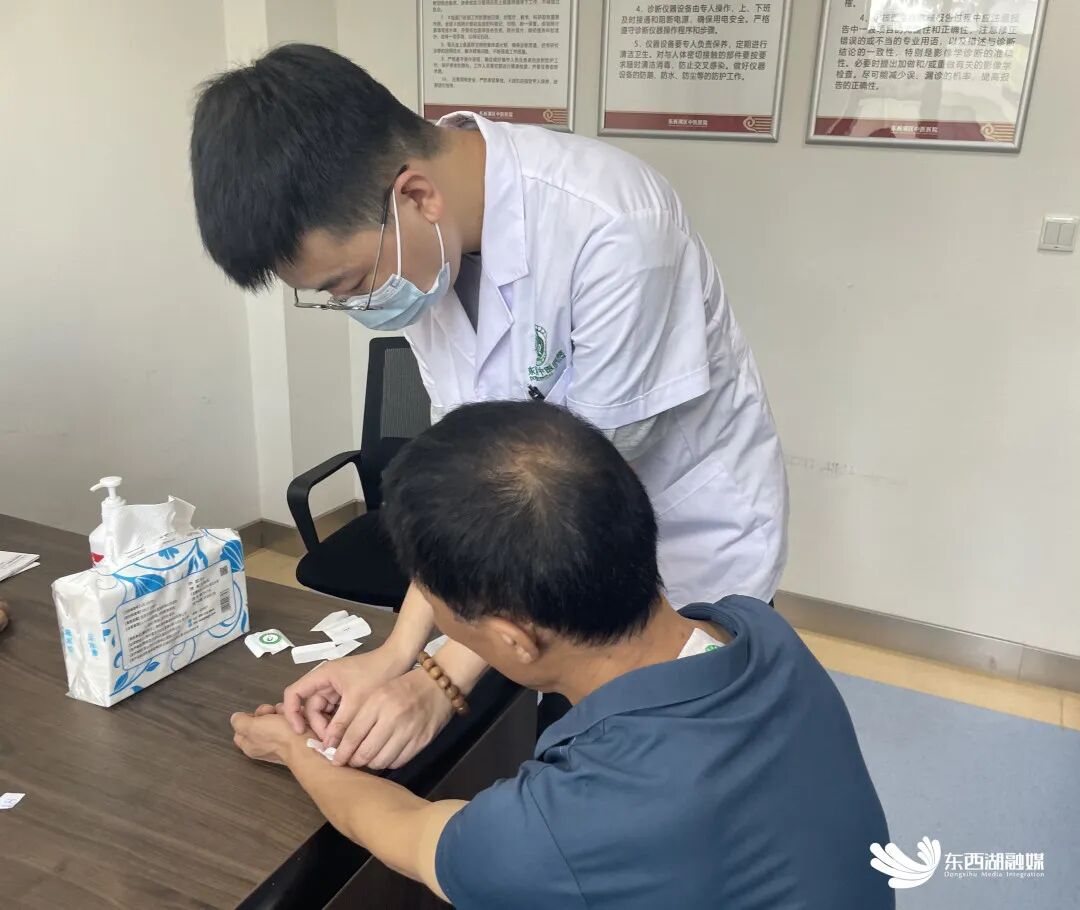 59岁的陶先生常年颈椎疼痛,今年是他第五年来贴三伏贴,长期坚持下,陶先生颈椎酸胀麻痛的症状有明显改善,对于敷贴流程他也已经驾轻就熟。“每年我都在头伏、二伏、三伏的第一天来贴,有时候还有闰伏,就要四贴。”陶先生表示,三伏贴冬病夏治就是要坚持,长期持续贴才能见效果。