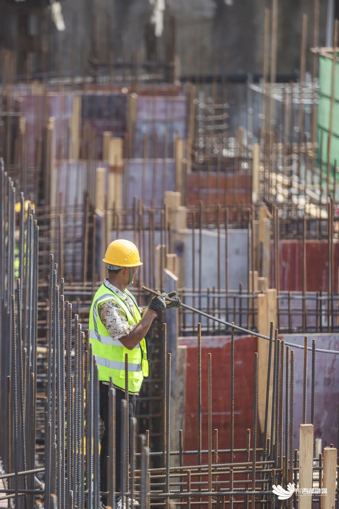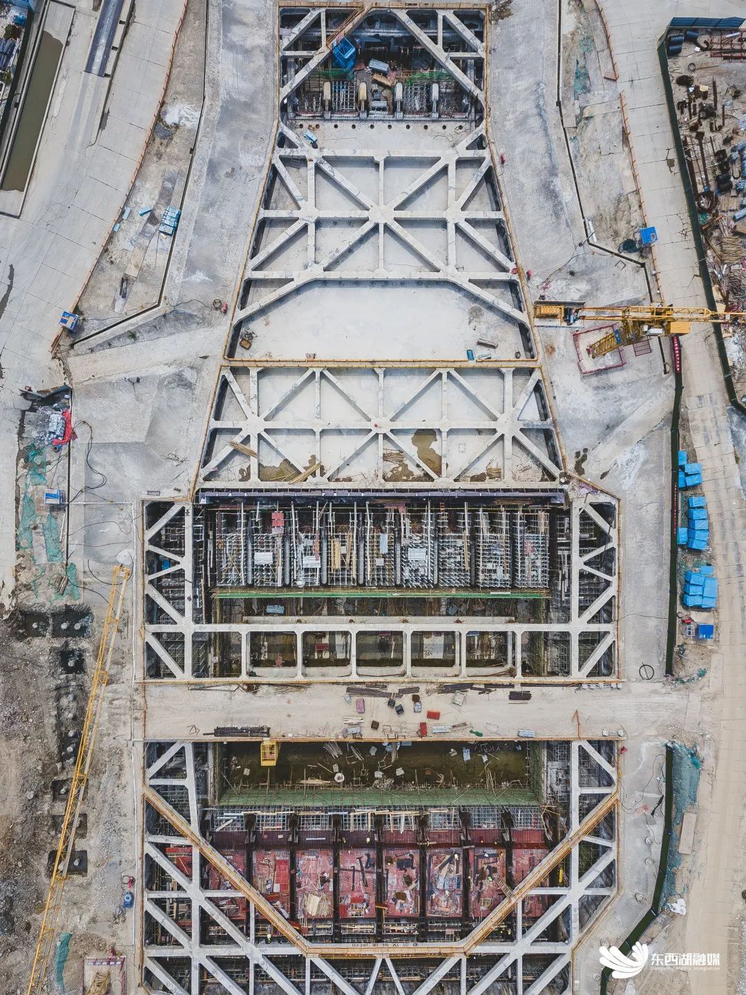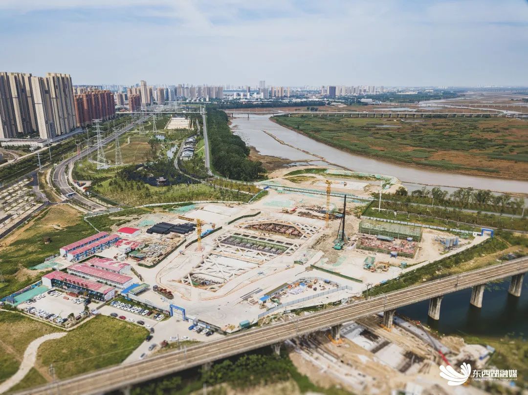记者在施工现场看到,各种工程机械穿梭不停,泵房主体结构正在进行钢筋绑扎和模板加固,主体结构旁边的变配电站也在进行基础结构施工。