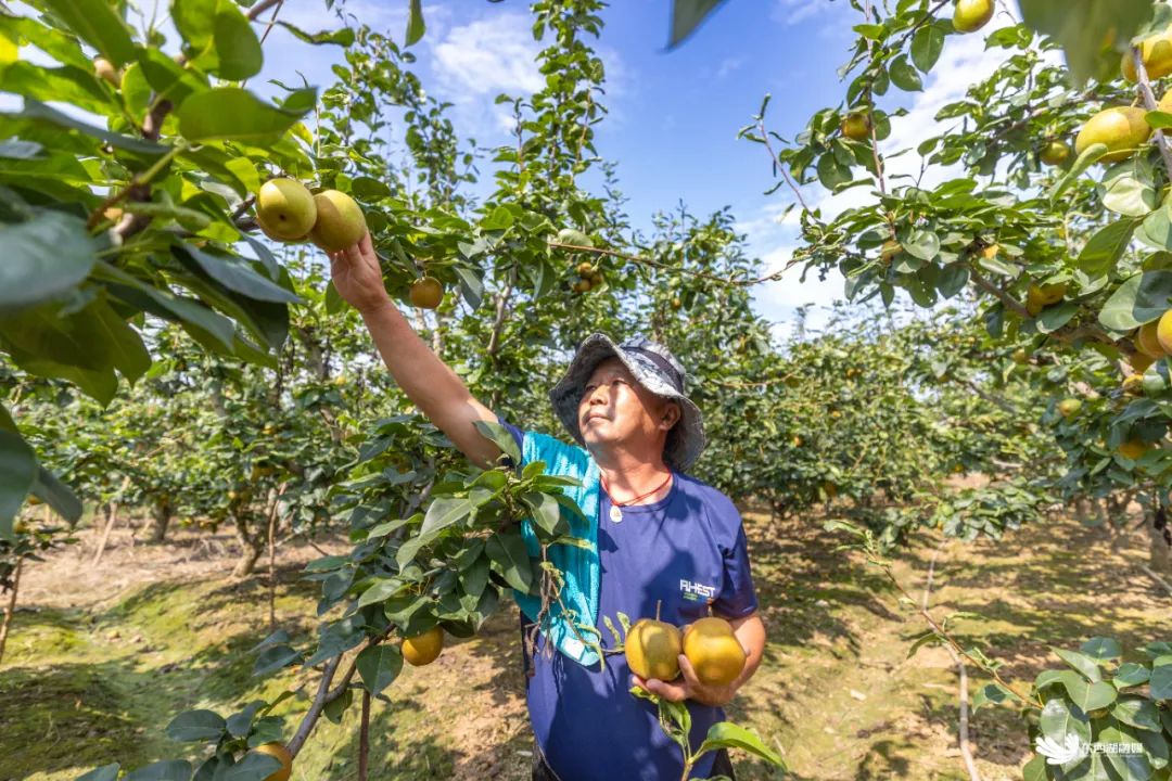 时值三伏,东西湖区辛安渡街300亩翠冠梨,迎来了成熟采摘季。