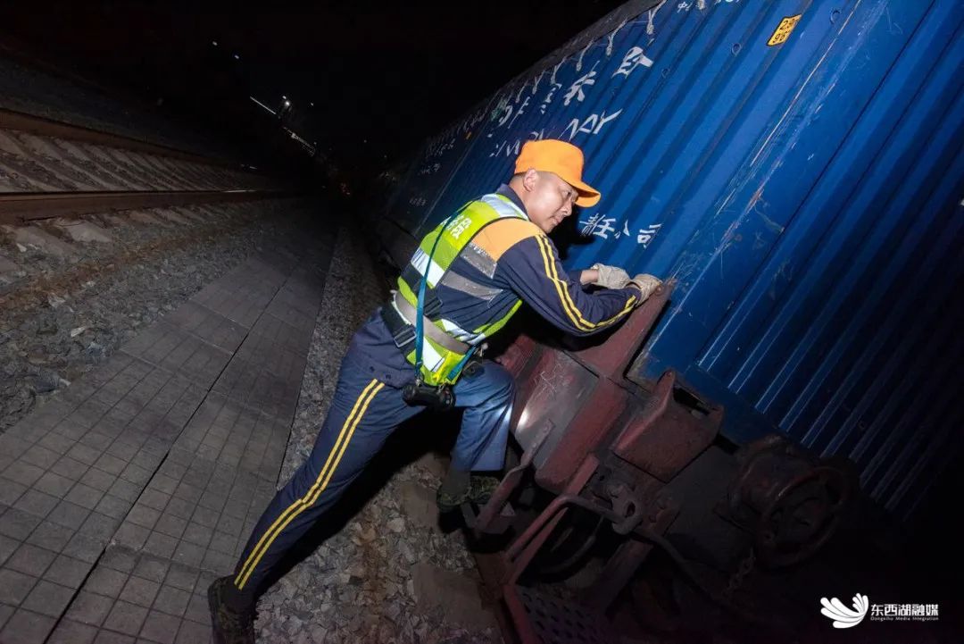 “我们班组抓安全,常用陈荣‘一点都不差、差一点都不行’来对照自己。”吴家山车站安全技术员邢晨介绍,今年初春的一个雨夜,他和陈荣同值夜班。陈荣扒乘中欧班列向货场推进,经过弯道时,因浓雾阻隔,无法判断存车位置安全状况。陈荣果断摁下调车灯显设备上的红色紧急制动按钮,在冷风冷雨里步行踏勘、反复确认,最终安全完成存车作业。