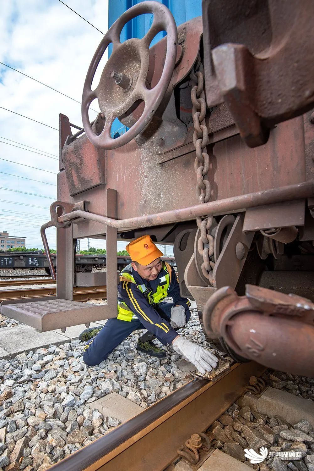 “脱轨器下道,轮缘槽无异物,起动!”7月24日11时,久雨初晴的武汉铁路局汉西车务段吴家山车站,站场轨道气温接近40℃,连接员陈荣撤除车辆防溜铁鞋,随后扒乘瞭望,将货车送往中欧班列(武汉)集装箱中心站货物线。