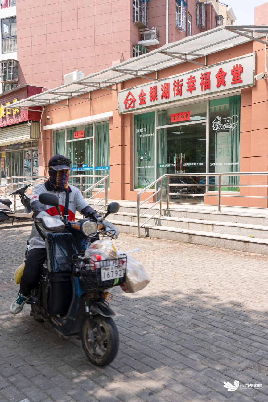 今年37岁的孙洪亮家住金银湖幸福食堂旁边的金湖苑小区,入职配送行业已有6年。最近一周,其他队员所属平台餐食订单较多,孙洪亮就肩负起幸福食堂“助老送餐”任务。