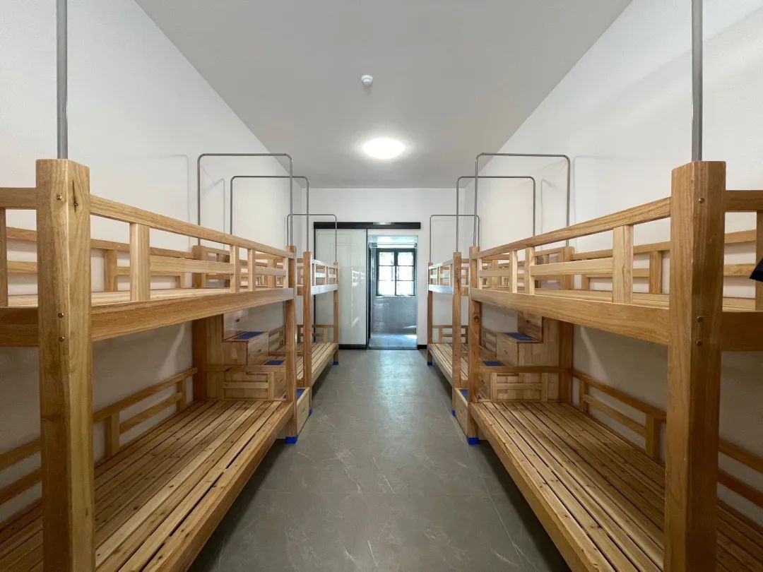 记者了解到,学校每个宿舍都配有高低床,住6-8人,每个人有一个柜子,床和柜子都是纯实木、环保材料。宿舍已经通过了一次环评检测,之后还会进行一次环评检测,请家长亲自参与,环评达标后学生才能入住。学校全部采用中央空调、新风系统,洗漱、厕所设施都很齐全。
