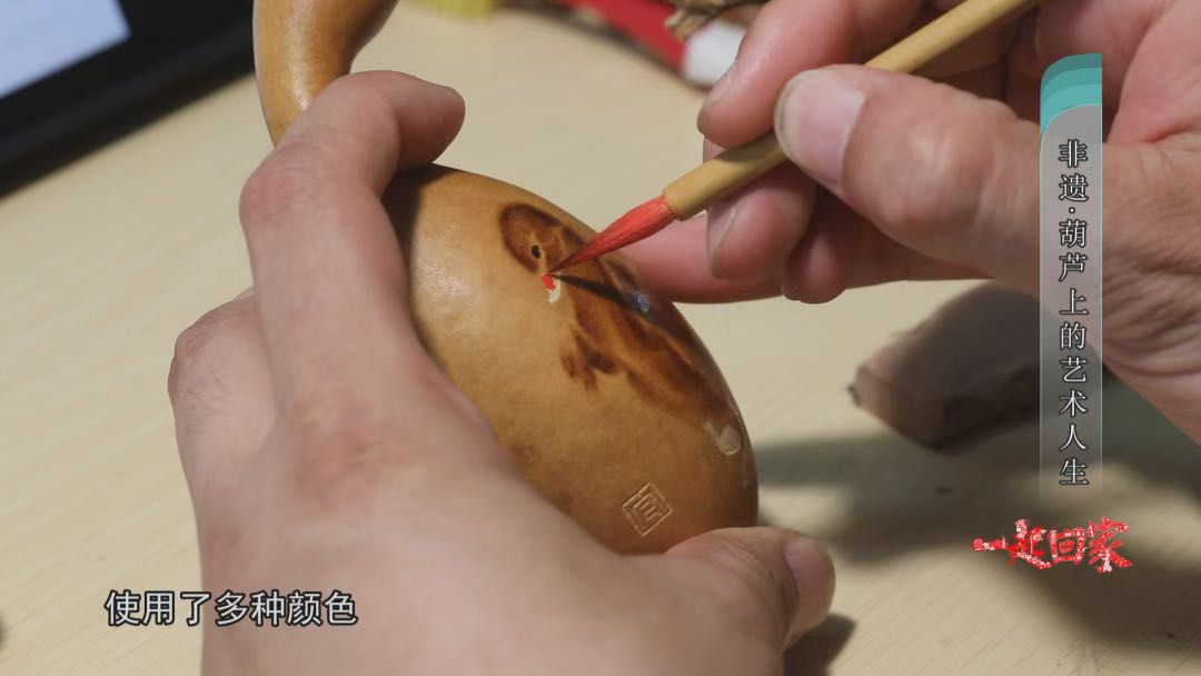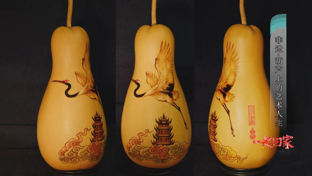 烙画艺术非遗传承人 王一民介绍“在葫芦的选材上非常重要,因为葫芦是葫芦烙画创作的直接载体,你很多题材的表现要通过葫芦它的外在形式,这个葫芦长得是什么样子,它适合创作一种什么样的题材。葫芦烙画创作要用存放2年以上的葫芦,新的葫芦是不行的,因为它的水分还没有完全干透。葫芦作品的创作,它的创造性和独创性是很重要的,这一点一直是我所追求的。我所有的葫芦创作,无论是烙画,无论是彩刻或者是花雕,以原创为主,所以原创是我作品最大的一个特色。”