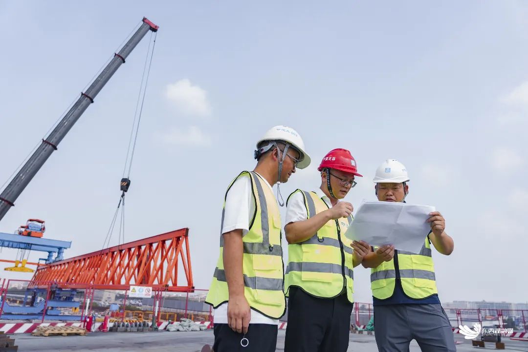 8月7日,在中建三局G107国道快速化改造项目二标段钢箱梁安装现场,黄志强的身影穿梭在项目工地,了解各工序生产情况、现场指导员工焊接操作以及对生产安全进行检查。