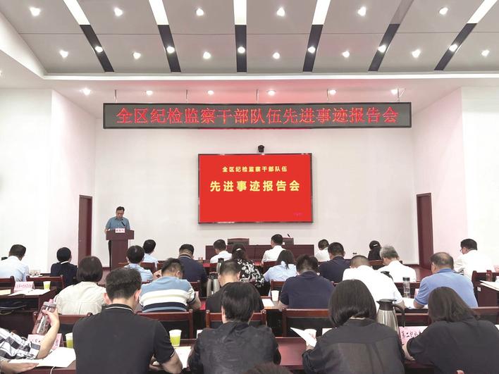 东西湖区纪委监委组织召开全区纪检监察干部队伍先进事迹报告会,以先进典型事迹激励干部担当作为。