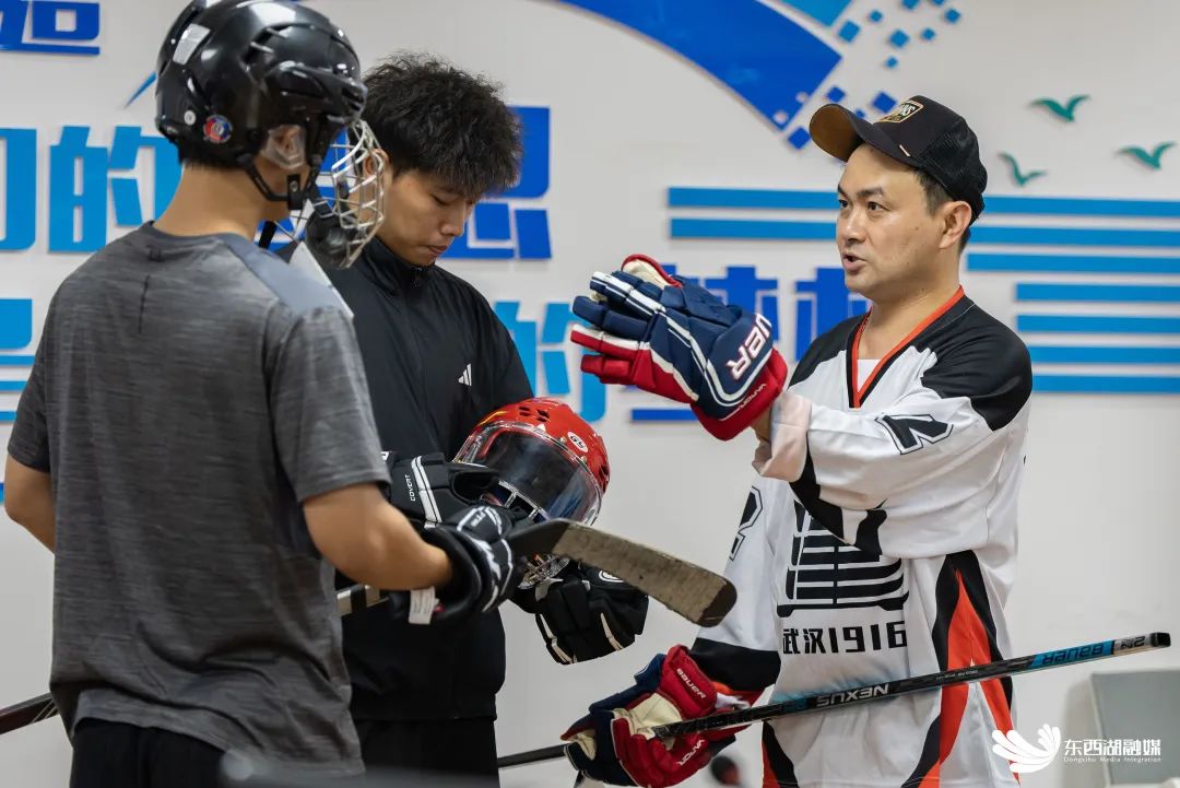 冰球是小众冰雪运动,需要专业冰场,成本高昂。黄纬纮结合武汉实情,用轮滑代替冰刀,转换为“轮滑冰球”,只要有块平地,就能驰骋挥杆。