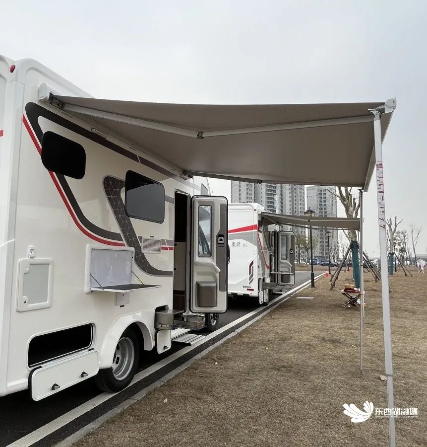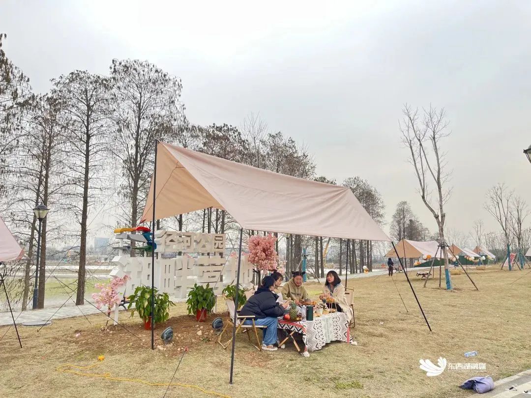滨河南路,露营基地房车、帐篷、桌椅、天幕一应俱全,涵盖房车营地、精致露营、集装箱BOX、沉浸式车展、后备箱市集等功能区块。