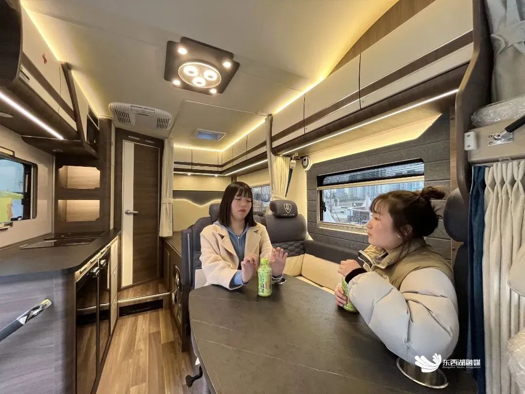 房车空间宽敞,配有卧室、卫生间、简易厨房,像极了缩小版的居家空间。