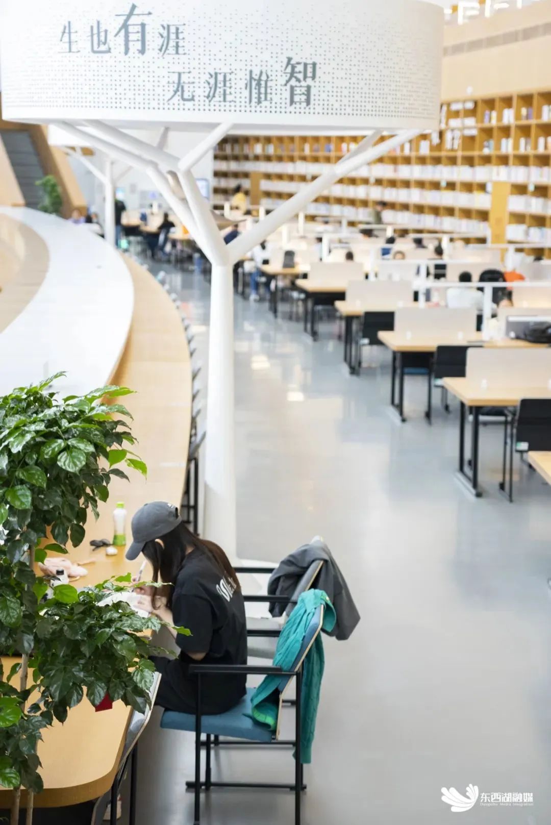 “山中何事,松花酿酒,春水煎茶”“晓看天色暮看云、行也思君坐也思君”“微微风簇浪、散作满河星”……坐上图书馆专属图腾椅,伴着书香与竹香,在浩瀚的书海中寻找自我。