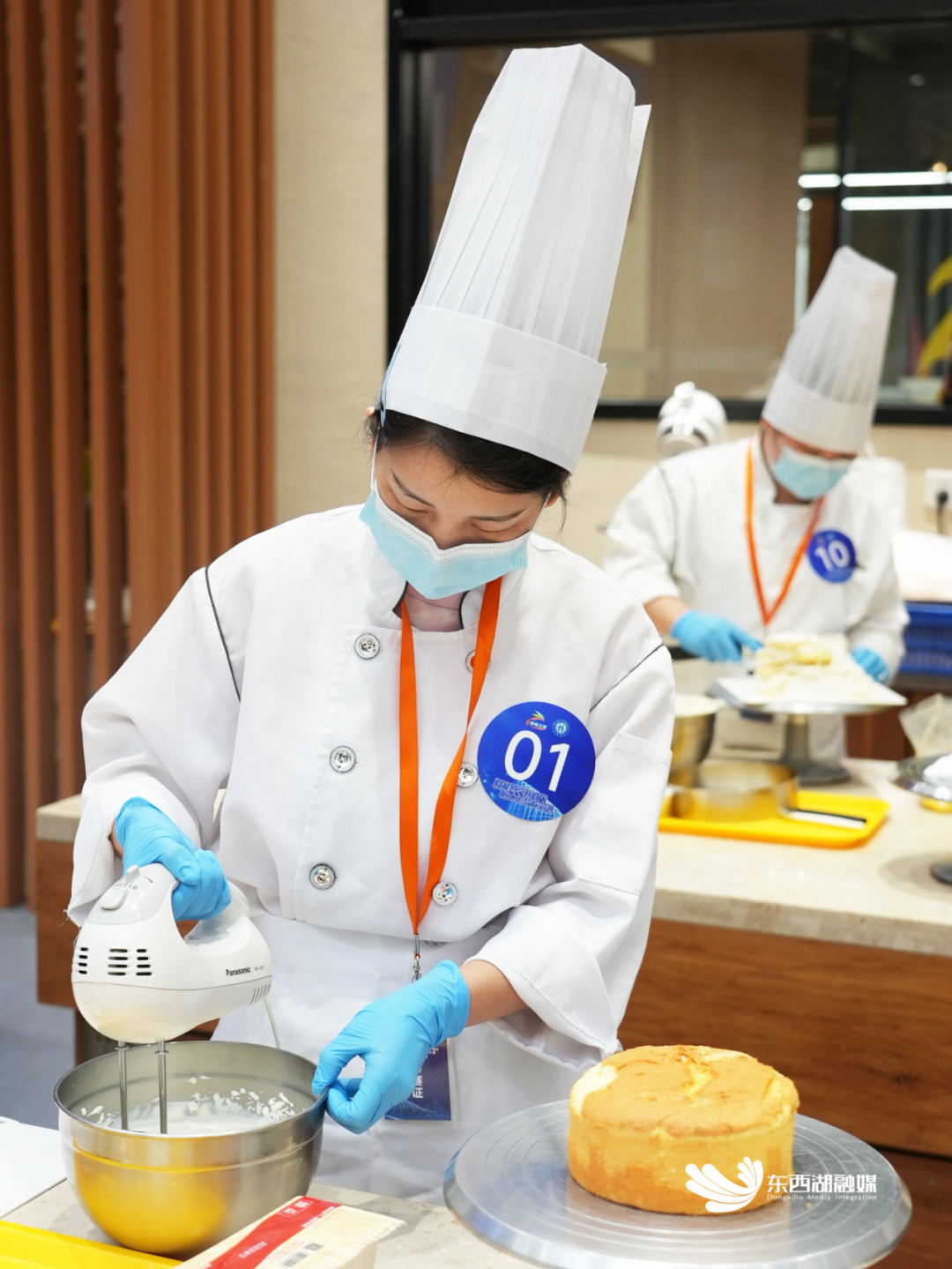 装饰主题蛋糕制作要求有创意并彰显临空港特点。比赛现场,选手作品让人眼花缭乱——巧克力做成的芯片、金色勾勒出的电阻和导线、糖衣做成的铜线,“光芯网”在蛋糕上完美呈现;两个蛋糕中间以“饼干桥”实现“硬联通”,象征临空港融合发展新格局;黑白奶油做成的山、抹茶粉装点了山上的绿、蓝白奶油做成的水,模拟出登临“吴家山”眺望临空新城的山水画卷。