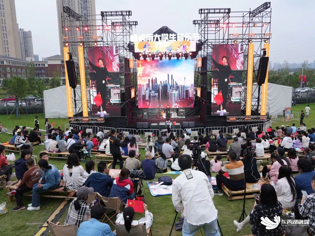 当坦桑尼亚籍大学生李国强和青年歌唱演员徐千惠唱响《黄鹤楼》,夜幕开始降临,2023梧桐雨大学生音乐节决赛“燃”向最高潮!