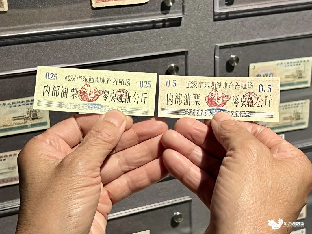 二十年前,万健定居武汉东西湖区,开始重点收集东西湖票证,走遍了山山水水。“据我估计,东西湖区应该有近2000个票面种类,我目前收藏了有1/3。”本次所展示的油票中,有两张来自东西湖水产养殖场的内部油票。