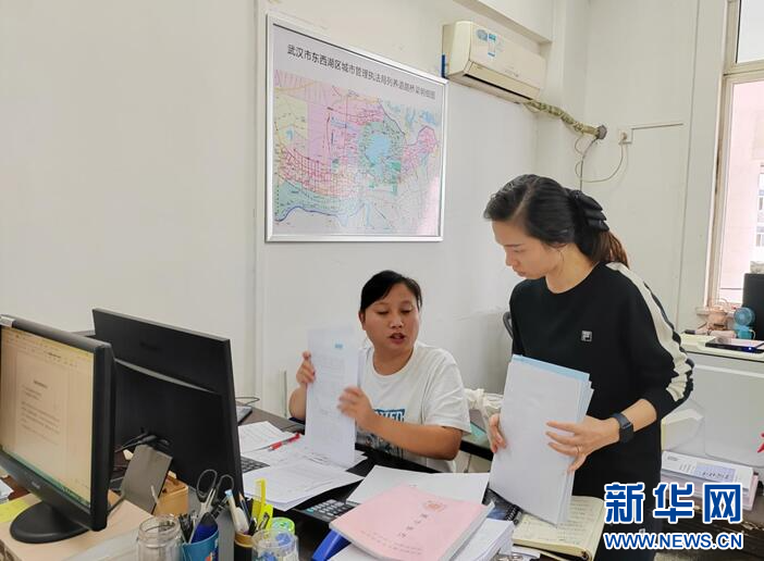 图为东西湖区治庸问责办干部前往区城管执法局对“双评议”事项录入情况开展监督检查