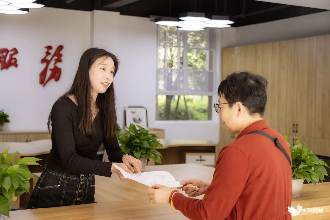 社区党群服务中心在改造时按照“共同缔造”理念,广泛听取群众意见,通过“一岗通办”改革为社区工作增能提效,将窗口服务接待工位从12个压缩至4个,办公空间压缩至中心使用面积的十分之一,从而腾出1300平方米的服务空间供群众使用。