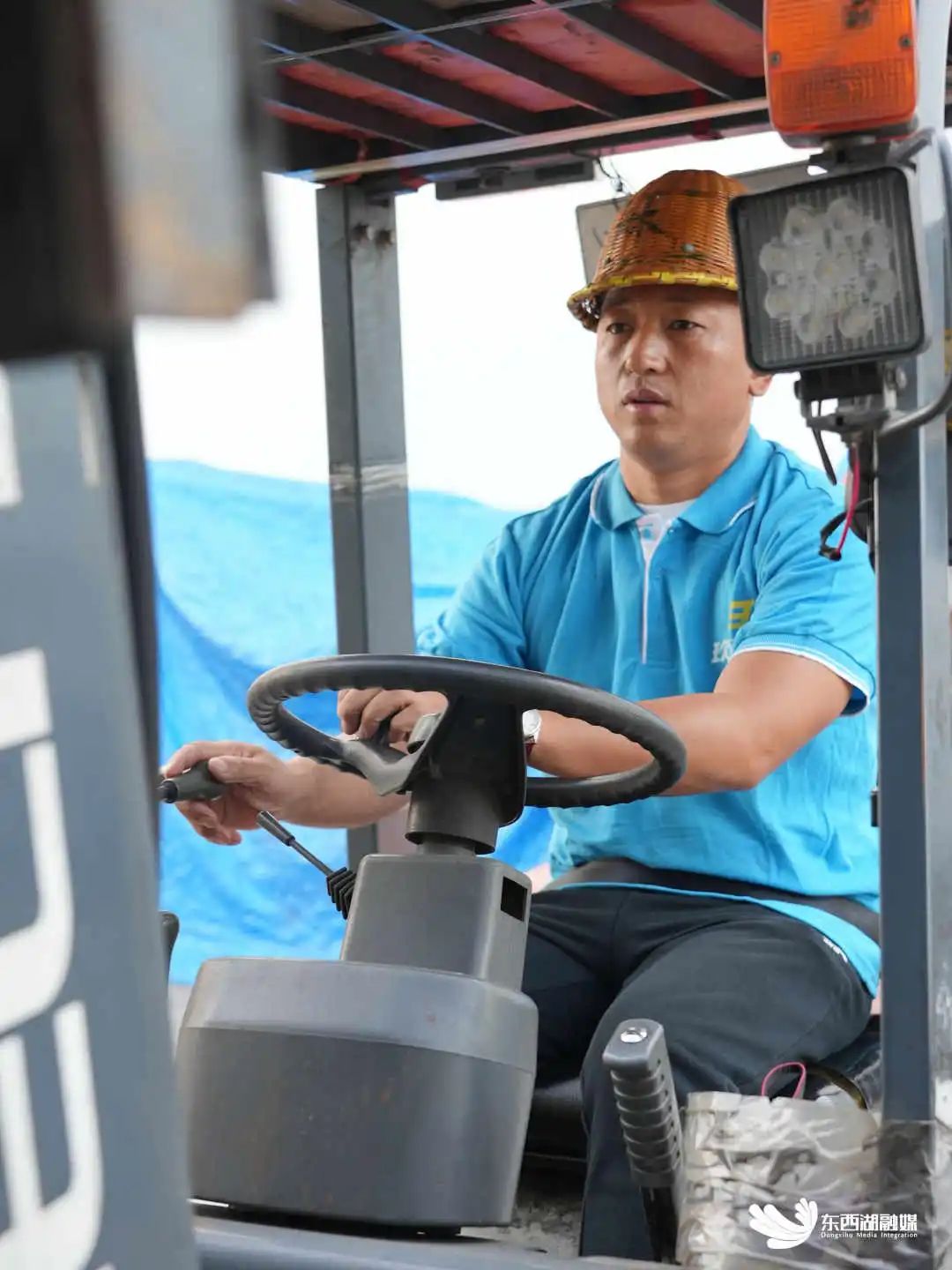 他仔细观察其他司机操作叉货、摆货的技巧,每天驾驶空车一遍遍练习启动、升降和后退,直到熟练驾驶叉车,“稳、准、快”操作一气呵成。