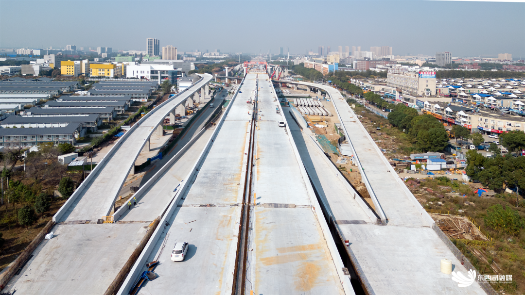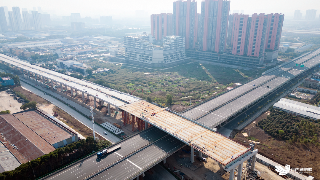 此外,项目与九通路交叉口钢箱梁吊装也已完工。九通路是东西湖区域南北纵向大道,连通临空产业园与吴家山生态新城,车流量大。钢箱梁架设施工完成后,九通路交叉口将复原。记者驱车探访,看到交叉口相关施工设施正在拆围搬离,后续将大幅缓解九通路周边的交通压力。