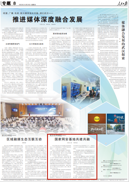 10月29日,人民日报以《国家网安基地共建共融》为标题,聚焦东西湖。