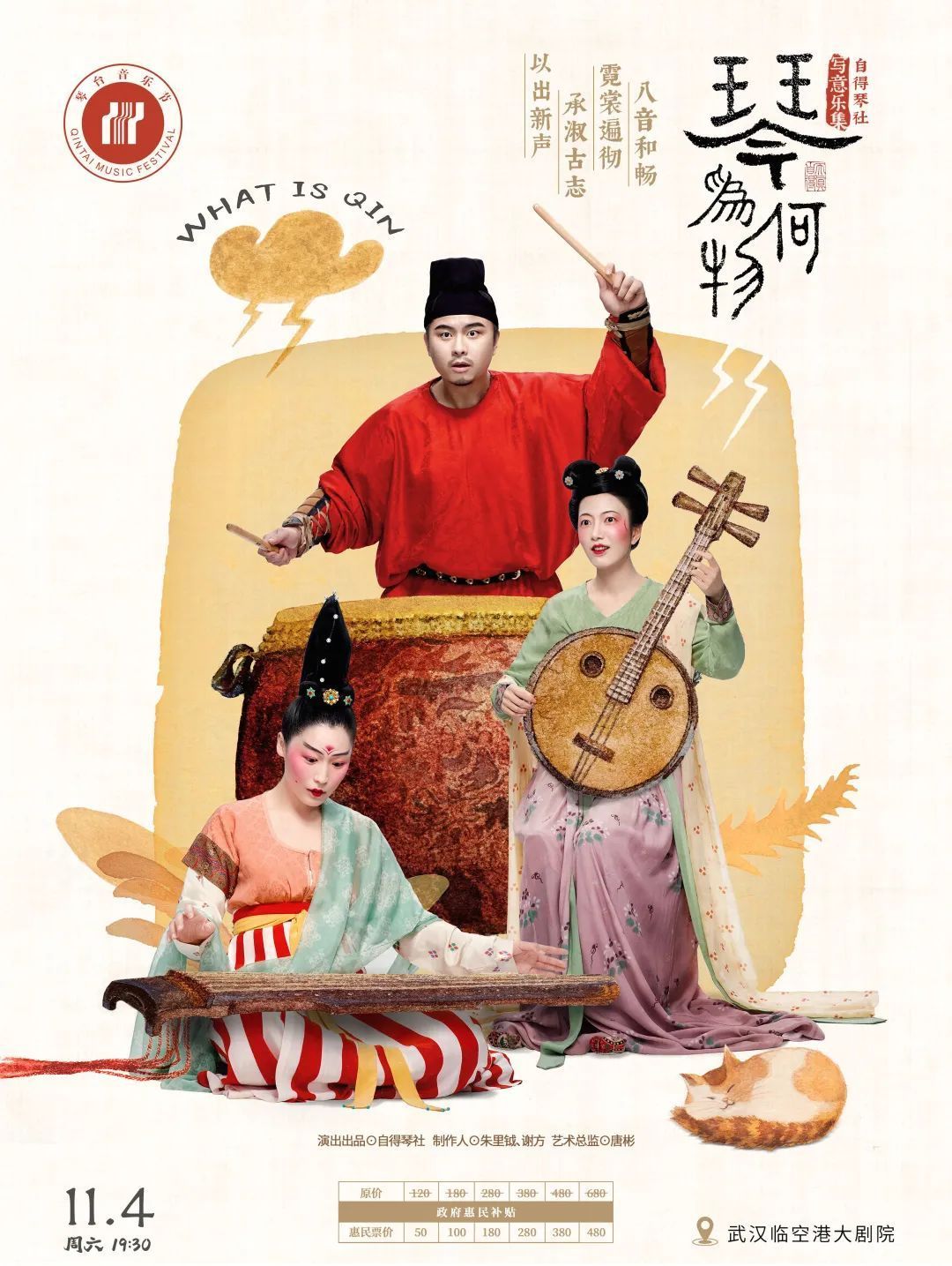 本场《琴为何物·唐·孤烟直——自得琴社朝代系列音乐会》将打造一场国风盛宴,在音乐会上,乐手们将身着唐代复原装束,如画中乐者,抚琴吹箫,鸣筝击鼓,宴乐众宾。将上演:传统古曲《流水》,以及《折柳阳关》《幽兰》两首在传统古曲基础上改编而成的作品,更有原创新作《幻世长安》《大夏》《霓裳惊梦》等。这些曲目或为传统古曲,或以古曲为基础重新创作改编。以琴会友,薪传古韵,感造新声,为观众们带来一场传统与创新交融,并极具特色的国风音乐会。