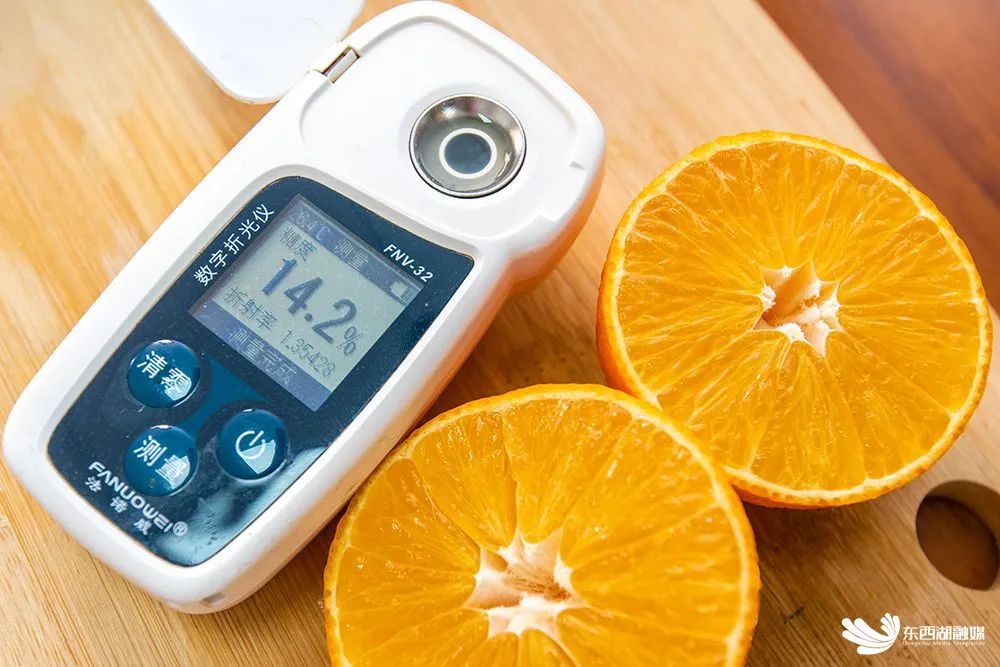 “样品先放门口,快递公司马上就到。”记者当天来到柑香源合作社时,合作社董事长林彩权正忙着跟妻子罗敏芝打包装箱。随机取出鲜果测量,数字折光仪糖度数值显示为“14.2%”。尽管糖度高于市售同一品种,林彩权仍然决定,等近日气温走低,鲜果酸度略降之后再量产上市,以确保“东山红美人”最佳口感。