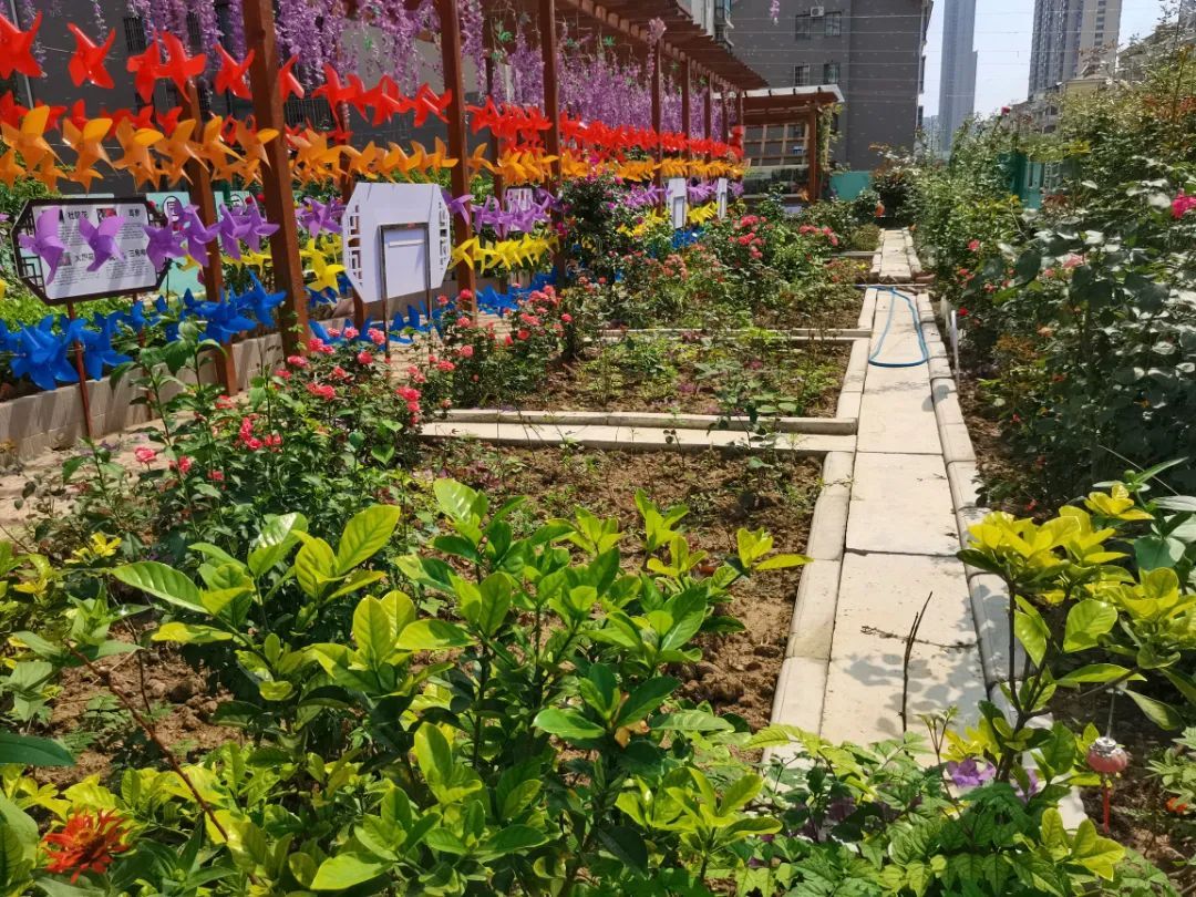 粉红月季肆意绽放,三角梅花开成瀑。不远处,还有胳膊粗的丝瓜垂挂在长廊上,一畦畦绿油油的菠菜长势喜人……将军路街道姑李路社区这片“小而美”的“屋顶花园”一派生机勃勃。